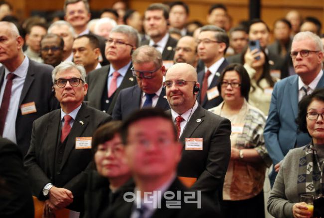 주한외교사절들이 7일 서울 중구 대한상의에서 열린 2026년 서울시 신년인사회에 참석하고 있다. 이날 신년인사회에는 서울시의회 의장, 서울시교육감, 국회의원, 시의원, 주한외교사절 등 각계인사 약 900여 명이 참석했다.