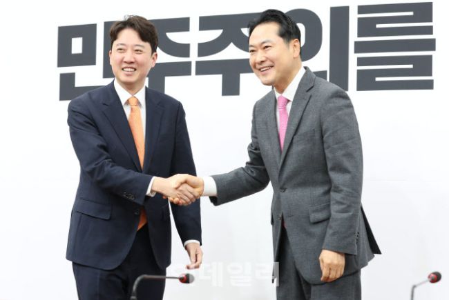 [포토]장동혁-이준석, '통일교·공천헌금 특검 연대' 회동