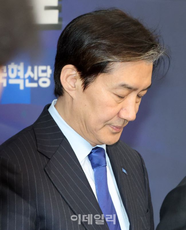 조국 조국혁신당 대표와 최고위원들이 26일 서울 여의도 국회에서 열린 '조국혁신당 최고위원회의'에서 이해찬 더불어민주당 상임고문의 별세를 묵념하고 있다.