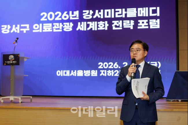 진교훈 강서구청장이 27일 이대서울병원에서 열린 ‘의료관광 세계화 전략 포럼’에서 발언을 하고 있다. 이날 포럼에선 의료·관광·학계 등 각 분야 전문가 7명이 참여해 주제발표와 토론을 진행했으며 의료관광 국내외 사례 분석, 강서구표 의료관광 대책과 세계화 전략을 중심으로 심도 있는 논의가 이뤄졌다. 강서구는 이날 포럼에서 도출된 의견과 창의적인 아이디어를