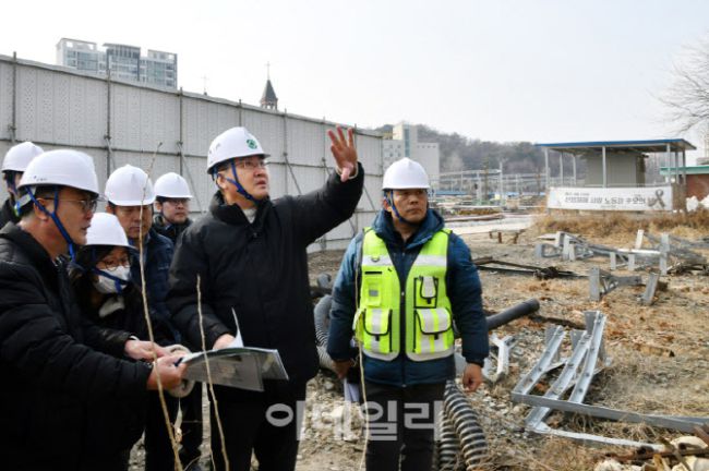 오승록 노원구청장이 9일 경춘선숲길 연장 사업 공사 현장을 점검하고 있다. 과거 기차가 달리던 철로를 공원으로 재생한 ‘경춘선 숲길’은 현재 월계동 녹천중학교에서부터 경춘철교를 통해 중랑천을 건너 서울시-구리 경계까지 약 6.7km 구간이 조성되었다. 지난 2017년 공원화 사업 종료 후에도 구는 화랑대 철도공원을 중심으로 콘텐츠를 보강해 숲길의 이색적인