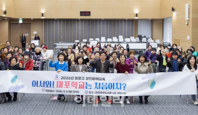 박강수 마포구청장이 9일 마포중앙도서관에서 열린 ‘2026년 초등기본교육 마포학교 개강식’에 참석해 수강생들의 배움을 응원했다. ‘마포학교’는 비문해·저학력 성인을 대상으로 일상생활에서 바로 활용할 수 있는 읽기·쓰기·말하기 중심의 문해교육을 제공하는 프로그램이다. 학습자의 수준과 속도를 고려한 반복 학습 방식으로 수업을 진행하며, 금융범죄 예방교육과 생활