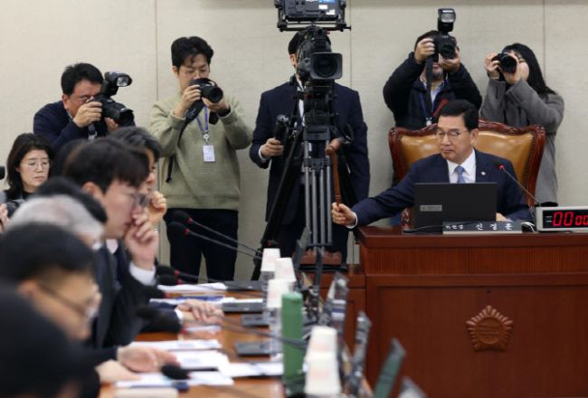 신정훈 위원장이 10일 오전 서울 여의도 국회에서 열린 행정안전위원회 전체회의에서 안건을 상정하며 의사봉을 두드리고 있다. 신정훈 위원장이 10일 오전 서울 여의도 국회에서 열린 행정안전위원회 전체회의에서 안건을 상정하며 의사봉을 두드리고 있다.