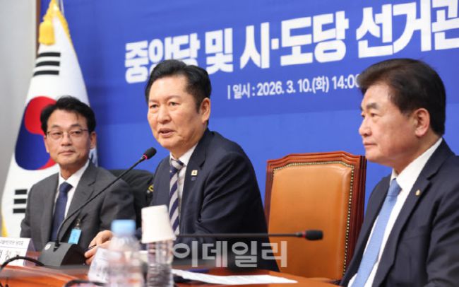 정청래 더불어민주당 대표가 10일 서울 여의도 국회에서 열린 중앙당 및 시·도당 선거관리위원장 연석회의에서 모두발언을 하고 있다.