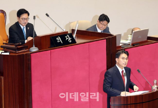 19일 서울 여의도 국회에서 열린 제433회국회(임시회) 제2차 본회의에서 윤상현 국민의힘 의원이 공소청법안(대안)에 대한 무제한 토론(필리버스터)을 하고 있다.