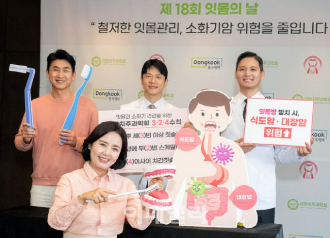 대한치주과학회(회장 설양조)와 동국제약(대표 송준호)은 ‘제18회 잇몸의 날’을 맞아 19일 서울 더플라자 호텔에서 ‘철저한 잇몸관리, 소화기암 위험을 줄입니다’ 캠페인을 개최했다. 잇몸의 날(3월 24일)은 대한치주과학회와 동국제약이 ‘잇몸 건강의 중요성’을 알리기 위해 2009년 제정한 기념일로 매년 대국민 캠페인을 통해 올바른 구강 관리법을 전하고 있