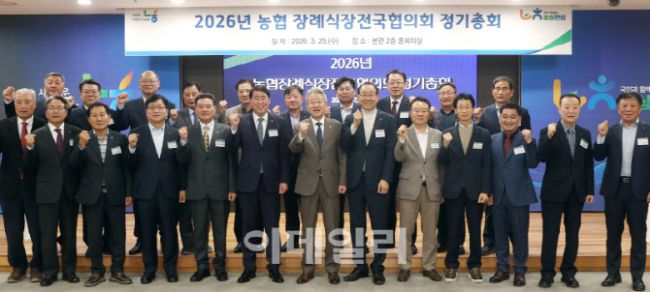 강호동(앞줄 오른쪽 일곱번째부터) 농협중앙회장이 25일 서울 중구 농협중앙회 본관에서 열린 2026년 농협 장례식장전국협의회 정기총회에서 김병민 협의회장(세종연서농협 조합장) 등 참석 조합장들과 기념 촬영을 하고 있다. 농협은 현재 전국 43개 장례식장을 운영하고 있으며, 장례식장을 운영하는 42개 농협이‘농협장례식장 전국협의회’를 구성해 장제사업 운영 정
