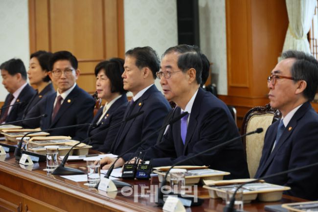 한덕수 대통령 권한대행 국무총리가 24일 서울 종로구 정부서울청사에서 국무위원 간담회를 개최하고 있다. 국무총리실 제공.