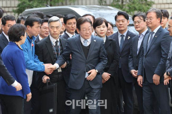 [사진공동취재단] 이재명 더불어민주당 대표가 26일 서울고등법원에서 열린 공직선거법 위반 사건 항소심 선고에 출석하고 있다.