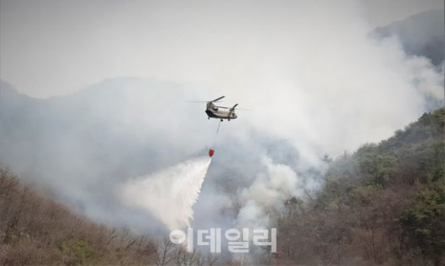 "한번에 5천 리터" 산불 진화 위해 군에서 띄운 치누크