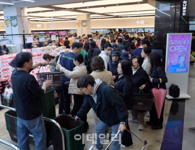 27일 새롭게 단장한 서울 강동구 하나로마트 둔촌포레온점에 고객들이 몰려 대성황을 이루고 있다. 농식품 전문 매장 농협 하나로마트를 운영하는 농협유통(대표이사 이동근)은 강동구 둔촌동 1만 2천 세대의 재건축단지인 올림픽파크포레온 아파트 상가(포레온 스테이션5)에 '하나로마트 둔촌포레온점'을 재개장하며 최대 60% 할인의 역대급 행사를 진행하고 있다. 매장