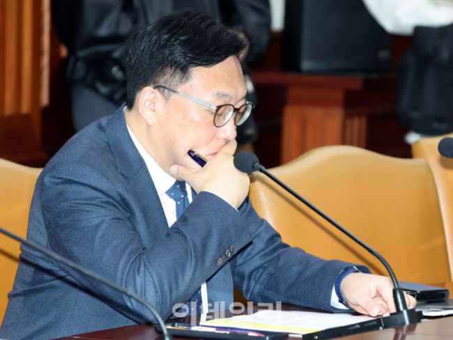 김병환 금융위원장이 2일 서울 종로구 정부서울청사에서 열린 경제관계장관회의에서 생각에 잠겨 있다.