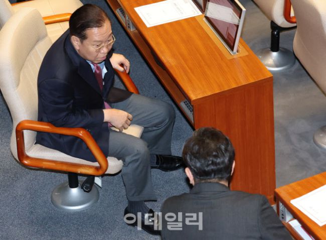 [포토]본회의, '논의하는 권영세-권성동'