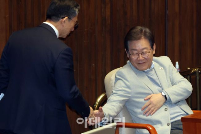 [포토]본회의, '악수하는 이재명-정성호'