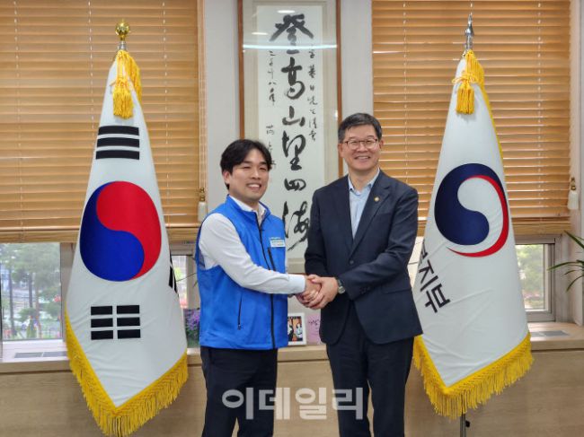 이기일(오른쪽) 보건복지부 제1차관과 정승문 보건복지부공무원노조위원장이 22일 세종청사에서 간담회를 갖고 기념촬영을 하고 있다. 이날 이기일 차관과 정승문 노조위원장은 ‘복지부 직원들의 복지 향상’을 주제로 대화했다. (사진=보건복지부공무원노동조합)