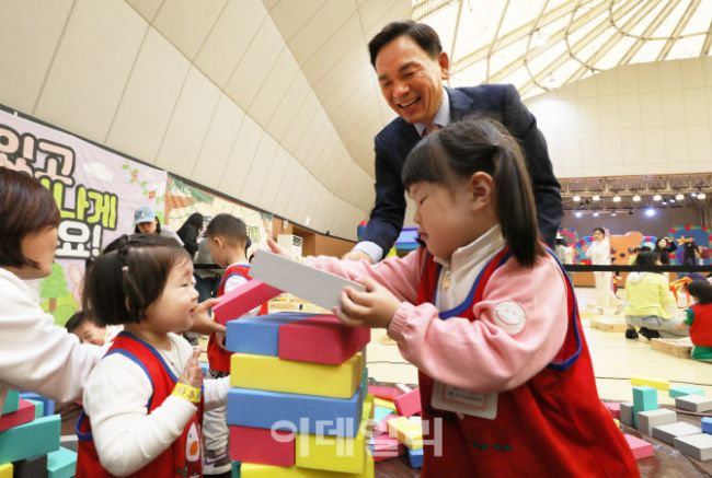 조성명 강남구청장이 어린이날을 앞두고 30일 일원에코파크에서 열린 대규모 어린이 축제 ‘강남 아추 페스타’에 참석해 어린이들과 함께하고 있다. 강남 아이들의 추억 만들기’라는 의미를 담은 이번 축제에는 174개 어린이집에서 3,000여 명이 참여하며 활기찬 분위기 속에서 성황리에 마무리됐다. (사진=강남구)