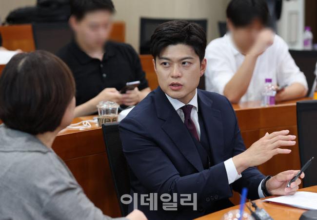 김용태 국민의힘 비상대책위원장이 22일 오후 서울 성북구 고려대 의과대학 문숙의학관에서 열린 ‘대한의료정책학교 특별 초청 대담 - 전공의·의대생들에게 듣는 의료대란 해결 방안’에 참석해 최안나 대한의료정책학교 교장과 대화하고 있다.