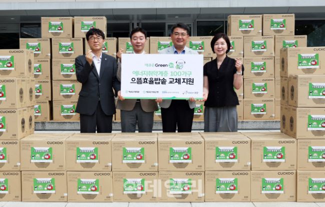오승록(오른쪽 두번째) 노원구청장이 30일 애큐온그룹의 ‘에너지 취약가구 전기밥솥 기부전달식’에 참석해 관계자들과 기념촬영을 하고 있다. 이번 전달식은 애큐온캐피탈, 애큐온저축은행, 서울특별시사회복지협의회가 공동으로 마련한 사회공헌 활동으로, 에너지 소비효율 1등급의 전기밥솥 100대(3,000만원 상당)가 노원구 내 에너지 취약가구에 지원된다. 전기밥솥은