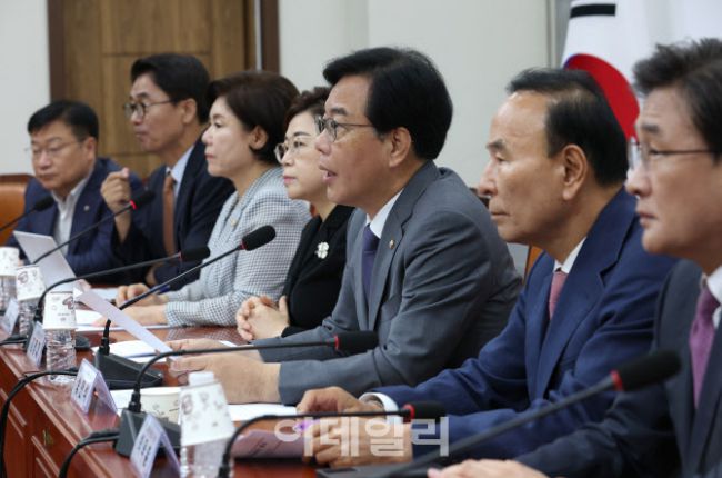 송언석 국민의힘 비상대책위원장 겸 원내대표가 10일 오전 서울 여의도 국회에서 열린 비상대책위원회의에서 모두발언을 하고 있다.