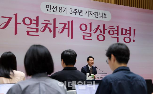 오세훈 서울시장이 16일 서울시청에서 취임 3주년 기자회견을 갖고 있다. 2025.07.16