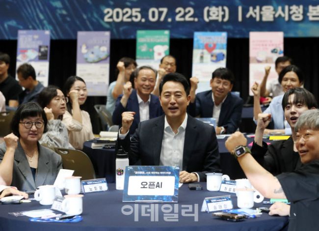 오세훈 서울시장이 22일 오전 서울시청 다목적홀에서 열린 ‘창의행정, AI로 제안하는 아이디어톤’ 발표회에 참석하고 있다. 이날 발표회는 전문가, 서울시 직원 등 300여 명이 참석해 미래 AI 행정혁신을 견인할 ‘우수 AI 활용 아이디어’ 10건 제안 발표부터 심사, 시상이 진행됐다.