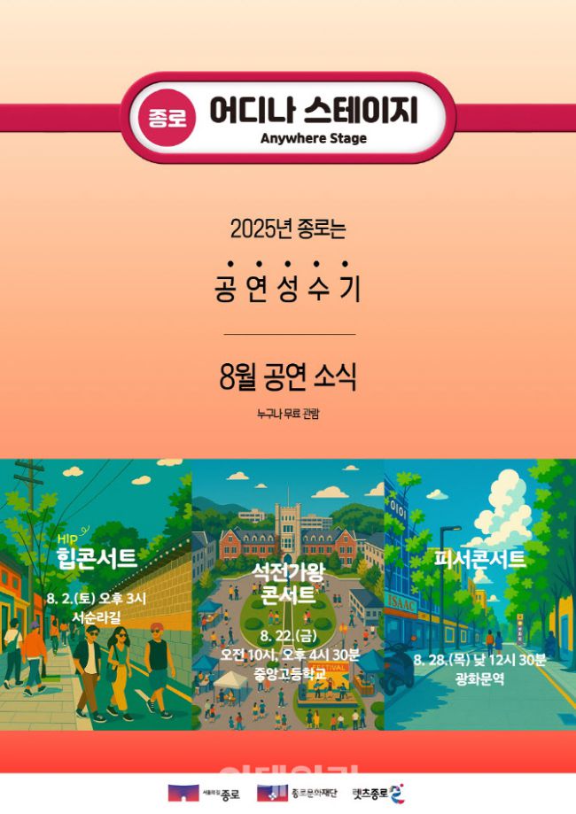 종로구(구청장 정문헌)가 2025년 여름, 시민과 함께하는 연중 문화예술 프로젝트 ‘어디나 스테이지’를 통해 종로 곳곳에서 다채로운 공연을 선보인다고 25일 밝혔다. 지난 5월 개막 축제를 시작으로 6월과 7월 공연을 성공적으로 마친 데 이어 8월에도 세 차례의 특별한 무대를 준비해 시민과 방문객 모두가 풍성한 문화 경험을 즐길 수 있도록 했다. 8월 2일