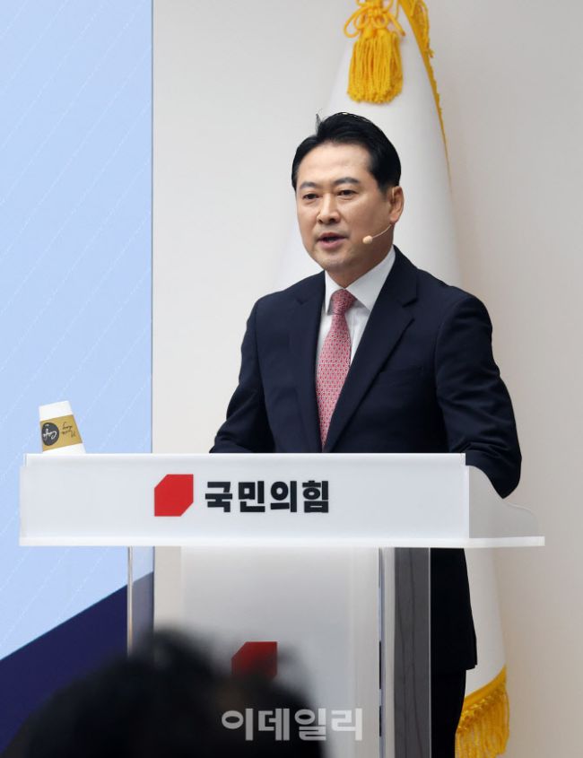 장동혁 국민의힘 당대표 후보가 3일 서울 여의도 국민의힘 당사에서 열린 제6차 전당대회 후보자 비전대회에서 비전발표를 하고 있다.