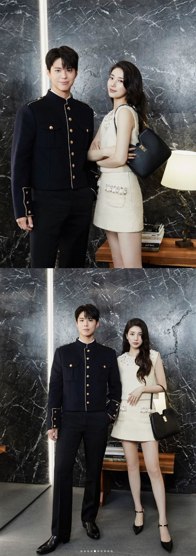 박보검과 수지. 사진=수지 SNS 가수 겸 배우 수지가 배우 박보검과의 투샷으로 화제다. 수지는 2일 SNS에 브랜드명을 태그한 뒤 여러 장의 사진을 게재했다. 공개된 사진 속 수지는 화보 촬영 속 배우 박보검과 포즈를 취하고 있는 모습으로 조화로운 비주얼을 보여주고 있다. 특히 마치 커플인 것처럼 비슷한 얼굴선, 분위기에 시선을 강탈한다. 박보검과 수지.