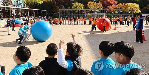 (인천=연합뉴스) 임순석 기자 = 28일 인천 부평구 부곡초등학교에서 열린 3~ 4학년 가을운동회에서 3학년 학생들이 공룡알 굴리기를 하고 있다. 2025.10.28 soonseok02@yna.co.kr ▶제보는 카카오톡 okjebo ▶연합뉴스 앱 지금 바로 다운받기~ ▶네이버 연합뉴스 채널 구독하기 <저작권자(c) 연합뉴스, 무단 전재-재배포, AI 학습