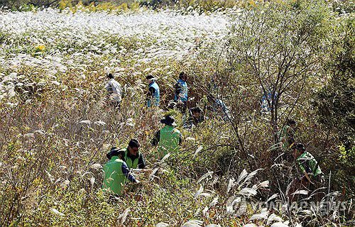 (광주=연합뉴스) 조남수 기자 = 28일 오전 광주 광산구 장록습지에서 영산강유역환경청 등 단체 관계자들이 생태교란 식물을 제거하고 있다. 이날 펼쳐진 습지보호지역 정화활동에 환경청, 지자체, 공공기관, 민간기업 등 130여명이 참여했다. 2025.10.28 iso64@yna.co.kr ▶제보는 카카오톡 okjebo ▶연합뉴스 앱 지금 바로 다운받기~ ▶네