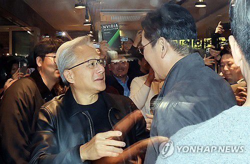 (서울=연합뉴스) 이진욱 기자 = 젠슨 황 엔비디아 최고경영자가 30일 오후 서울 강남구 삼성역 인근 깐부치킨 매장에서 이재용 삼성그룹 회장과 인사를 하고 있다. 2025.10.30 [공동취재] cityboy@yna.co.kr ▶제보는 카카오톡 okjebo ▶연합뉴스 앱 지금 바로 다운받기~ ▶네이버 연합뉴스 채널 구독하기 <저작권자(c) 연합뉴스, 무단