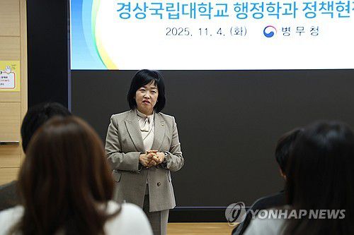 (서울=연합뉴스) 홍소영 병무청장이 4일 정부대전청사에서 병무청을 방문한 경상국립대학교 학생과 교수진에게 인사말을 하고 있다. 2025.11.4 [병무청 제공. 재판매 및 DB 금지] photo@yna.co.kr ▶제보는 카카오톡 okjebo ▶연합뉴스 앱 지금 바로 다운받기~ ▶네이버 연합뉴스 채널 구독하기 <저작권자(c) 연합뉴스, 무단 전재-재배포,