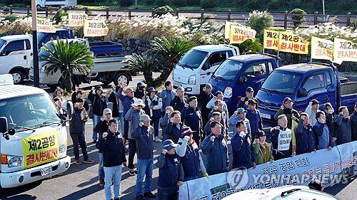 제주 제2공항 발표 10년 맞아 차량시위 나선 농민들