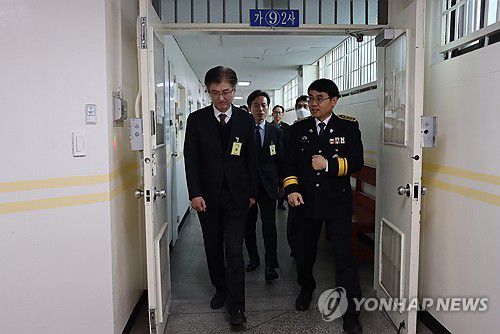 (수원=연합뉴스) 류수현 기자 = 수원구치소는 10일 수원지법 시찰단과 시설 운영 현황 및 수용자 처우 상태 등을 점검했다고 밝혔다. 왼쪽부터 김세윤 수원지법원장과 이권상 수원구치소 부소장. 2025.11.10 [수원구치소 제공] you@yna.co.kr ▶제보는 카카오톡 okjebo ▶연합뉴스 앱 지금 바로 다운받기~ ▶네이버 연합뉴스 채널 구독하기 <저
