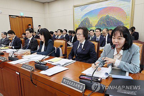 (서울=연합뉴스) 박동주 기자 = 송경희 개인정보보호위원회 위원장이 11일 서울 여의도 국회에서 열린 정무위원회 전체회의에서 의원질의에 답하고 있다. 2025.11.11 pdj6635@yna.co.kr ▶제보는 카카오톡 okjebo ▶연합뉴스 앱 지금 바로 다운받기~ ▶네이버 연합뉴스 채널 구독하기 <저작권자(c) 연합뉴스, 무단 전재-재배포, AI 학습