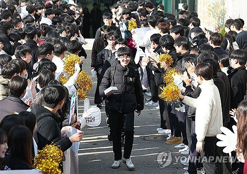 (서울=연합뉴스) 김성민 기자 = 수능을 하루 앞둔 12일 서울 은평구 은평고등학교에서 수험생들이 1,2학년 학생과 교사들의 응원을 받으며 교정을 나서고 있다. 2025.11.12 ksm7976@yna.co.kr ▶제보는 카카오톡 okjebo ▶연합뉴스 앱 지금 바로 다운받기~ ▶네이버 연합뉴스 채널 구독하기 <저작권자(c) 연합뉴스, 무단 전재-재배포,