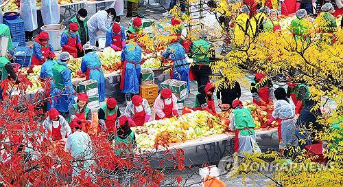 (대구=연합뉴스) 윤관식 기자 = 12일 대구 동구 아양아트센터 앞에서 열린 '2025 사랑플러스 김장 나눔' 행사에서 새마을부녀회 등 500여명이 김장을 하고 있다. 이날 만들어진 김장 김치 4천포기는 관내 지역 소외계층에 전달된다. 2025.11.12 psik@yna.co.kr ▶제보는 카카오톡 okjebo ▶연합뉴스 앱 지금 바로 다운받기~ ▶네이버