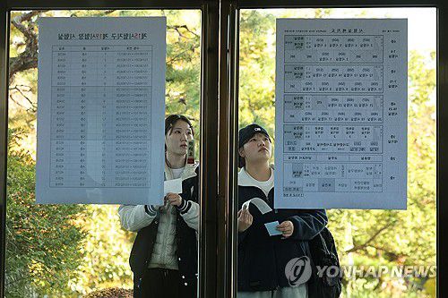 (서울=연합뉴스) 서대연 기자 = 2026학년도 대학수학능력시험(수능)을 하루 앞둔 12일 서울 중구 이화여자고등학교에서 수험생들이 고사장을 확인하고 있다. 2025.11.12 dwise@yna.co.kr ▶제보는 카카오톡 okjebo ▶연합뉴스 앱 지금 바로 다운받기~ ▶네이버 연합뉴스 채널 구독하기 <저작권자(c) 연합뉴스, 무단 전재-재배포, AI 학