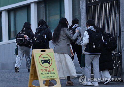 (전주=연합뉴스) 정경재 기자 = 2026학년도 대학수학능력시험일인 13일 오전 전북 전주시 완산구 한일고등학교에 마련된 전북특별자치도교육청 67지구 제11시험장으로 수험생이 들어가고 있다. 2025.11.13 jaya@yna.co.kr ▶제보는 카카오톡 okjebo ▶연합뉴스 앱 지금 바로 다운받기~ ▶네이버 연합뉴스 채널 구독하기 <저작권자(c) 연합뉴