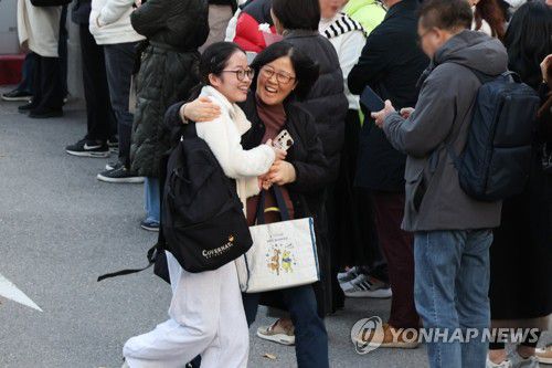 (서울=연합뉴스) 이진욱 기자 = 2026학년도 대학수학능력시험일인 13일 서울 중구 이화여자외국어고등학교 앞에서 가족이 수험생을 반기고 있다. 2025.11.13 cityboy@yna.co.kr ▶제보는 카카오톡 okjebo ▶연합뉴스 앱 지금 바로 다운받기~ ▶네이버 연합뉴스 채널 구독하기 <저작권자(c) 연합뉴스, 무단 전재-재배포, AI 학습 및 활