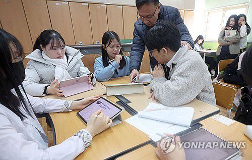 (창원=연합뉴스) 김동민 기자 = 14일 오전 경남 창원시 마산합포구 합포고등학교 3학년 교실에서 수험생이 태블릿PC를 이용해 전날 친 '2026학년도 대학수학능력시험(수능)' 가채점을 하고 있다. 2025.11.14 image@yna.co.kr ▶제보는 카카오톡 okjebo ▶연합뉴스 앱 지금 바로 다운받기~ ▶네이버 연합뉴스 채널 구독하기 <저작권자(c