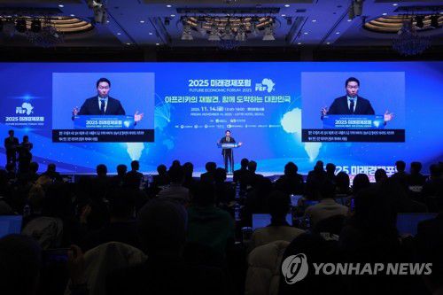 (서울=연합뉴스) 홍해인 기자 = 최태원 대한상공회의소 회장 겸 SK그룹 회장이 14일 서울 중구 롯데호텔에서 국가기간뉴스통신사 연합뉴스 주최로 열린 '2025 미래경제포럼'에서 축사하고 있다. 2025.11.14 hihong@yna.co.kr ▶제보는 카카오톡 okjebo ▶연합뉴스 앱 지금 바로 다운받기~ ▶네이버 연합뉴스 채널 구독하기 <저작권자(c)