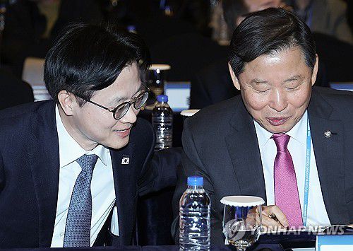 (서울=연합뉴스) 김성민 = 14일 서울 중구 롯데호텔에서 국가기간뉴스통신사 연합뉴스 주최로 열린 '2025 미래경제포럼'에서 국회 산업통상자원중소벤처기업위원회 이철규 위원장(오른쪽)이 김정관 산업부장관과 대화를 나누고 있다. 이날 포럼은 '아프리카의 재발견, 함께 도약하는 대한민국'을 주제로 열렸다. 2025.11.14 ksm7976@yna.co.kr ▶