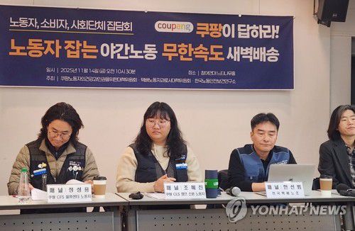(서울=연합뉴스) 이율립 기자 = 14일 서울 종로구 참여연대 느티나무홀에서 '쿠팡이 답하라! 노동자 잡는 야간노동, 무한속도 새벽 배송' 집담회가 열리고 있다. 2025.11.14 2yulrip@yna.co.kr ▶제보는 카카오톡 okjebo ▶연합뉴스 앱 지금 바로 다운받기~ ▶네이버 연합뉴스 채널 구독하기 <저작권자(c) 연합뉴스, 무단 전재-재배포,