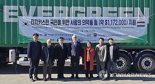 (서울=연합뉴스) 한국사랑나눔공동체(이은덕 이사장)는 14일 경기도 고양시에서 타지키스탄 국민을 위한 사랑의 의약품 선적 및 전달식 행사를 진행했다. 팜젠사이언스, 메디카코리아, 세한제약 등에서 117만2천불 상당의 의약품을 후원했다. 한국사랑나눔공동체가 주최하고 자선재단 'LONA'가 주관한 이번 행사에는 키롬 살로히딘 주한타지키스탄 대사와 한국사랑나눔공