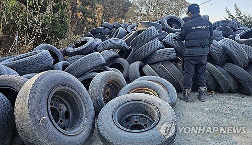 (춘천=연합뉴스) 양지웅 기자 = 강원 산지와 내륙 곳곳의 아침 최저 기온이 영하 10도 가까이 떨어진 19일 강원 춘천시 내 한 자동차 정비소의 타이어들 위로 서리가 내려앉아 있다. 해당 정비소 대표는 "최근 날씨가 추워지면서 겨울용 타이어 교체 손님이 몰려들고 있다"고 말했다. 2025.11.19 yangdoo@yna.co.kr ▶제보는 카카오톡 okj