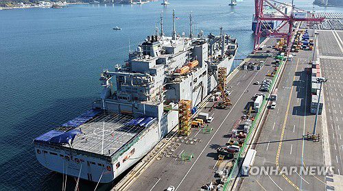 (창원=연합뉴스) 김동민 기자 = 19일 오후 경남 창원시 마산합포구 마산가포신항에서 미 해군 군수지원함 '월리 쉬라 호'의 MRO 작업이 진행 중이다. 한화오션은 지역 중소 정비업체들과 이곳에서 12월 중순까지 월리 쉬라 호의 점검과 수리, 내부 리모델링 등을 진행한다. 2025.11.19 image@yna.co.kr ▶제보는 카카오톡 okjebo ▶연합