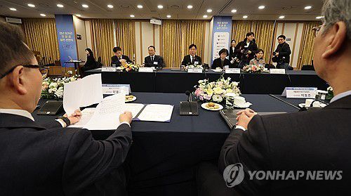 (서울=연합뉴스) 이진욱 기자 = 8일 서울 중구 한국프레스센터에서 열린 '청년 일자리 첫걸음 실천 선언식'에서 한국경제인협회, 한국경영자총협회 등 경제5단체 관계자들이 김영훈 고용노동부 장관 발언을 듣고 있다. 2025.12.8 cityboy@yna.co.kr ▶제보는 카카오톡 okjebo ▶연합뉴스 앱 지금 바로 다운받기~ ▶네이버 연합뉴스 채널 구독하