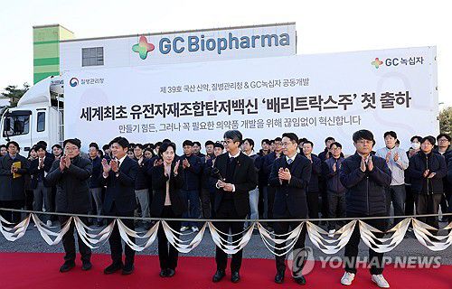 (화순=연합뉴스) 조남수 기자 = 8일 오후 전남 화순군 GC녹십자 화순공장에서 임승관 청장 등 질병관리청과 GC녹십자 관계자들이 세계 첫 유전자 재조합 탄저백신 첫 출하 축하 퍼포먼스하고 있다. 2025.12.8 iso64@yna.co.k ▶제보는 카카오톡 okjebo ▶연합뉴스 앱 지금 바로 다운받기~ ▶네이버 연합뉴스 채널 구독하기 <저작권자(c) 연