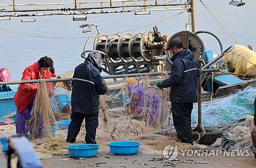 그물 손질하는 강릉 주문진항 어민들